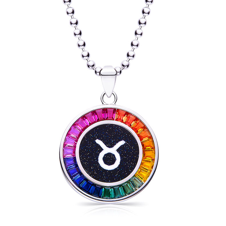 Taurus-Rainbow colored synthetic gemstone Accent Zodiac Name Pendant Necklace in 18k Gold-Plated Sterling Silver