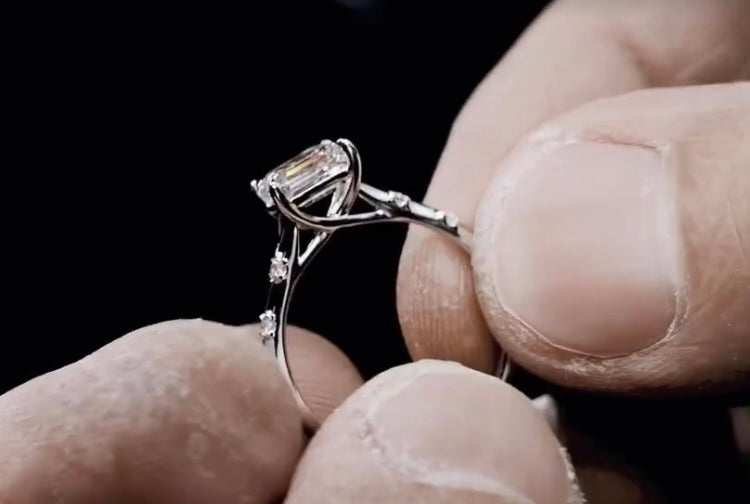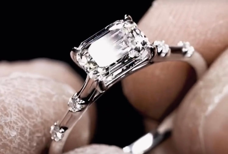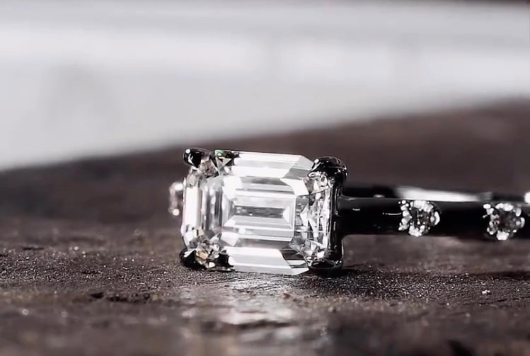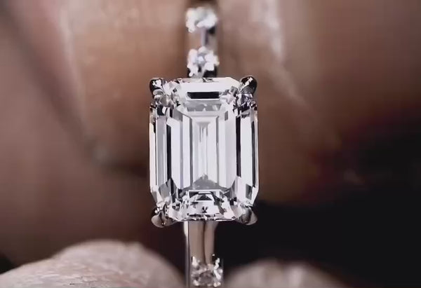 This timeless solitaire emerald cut engagement ring set is crafted with brilliant diamonds, creating a beautiful and classic look. Show your loved one you care with this meaningful and elegant set.