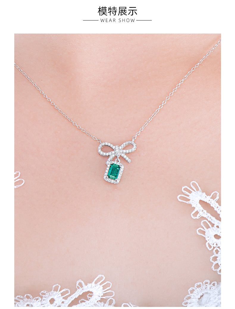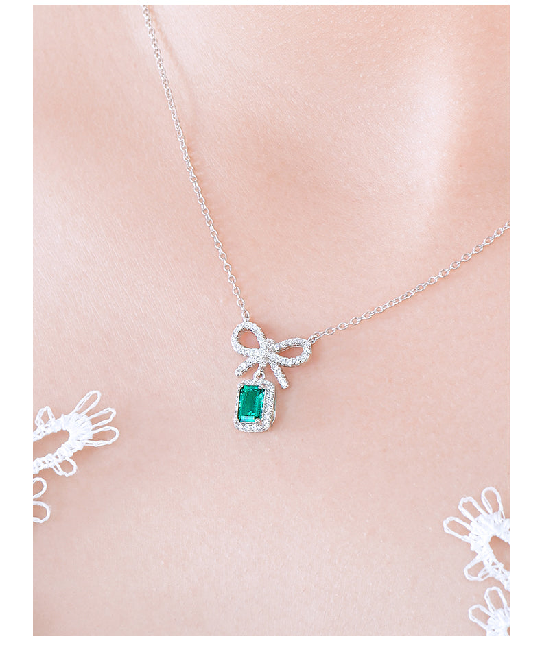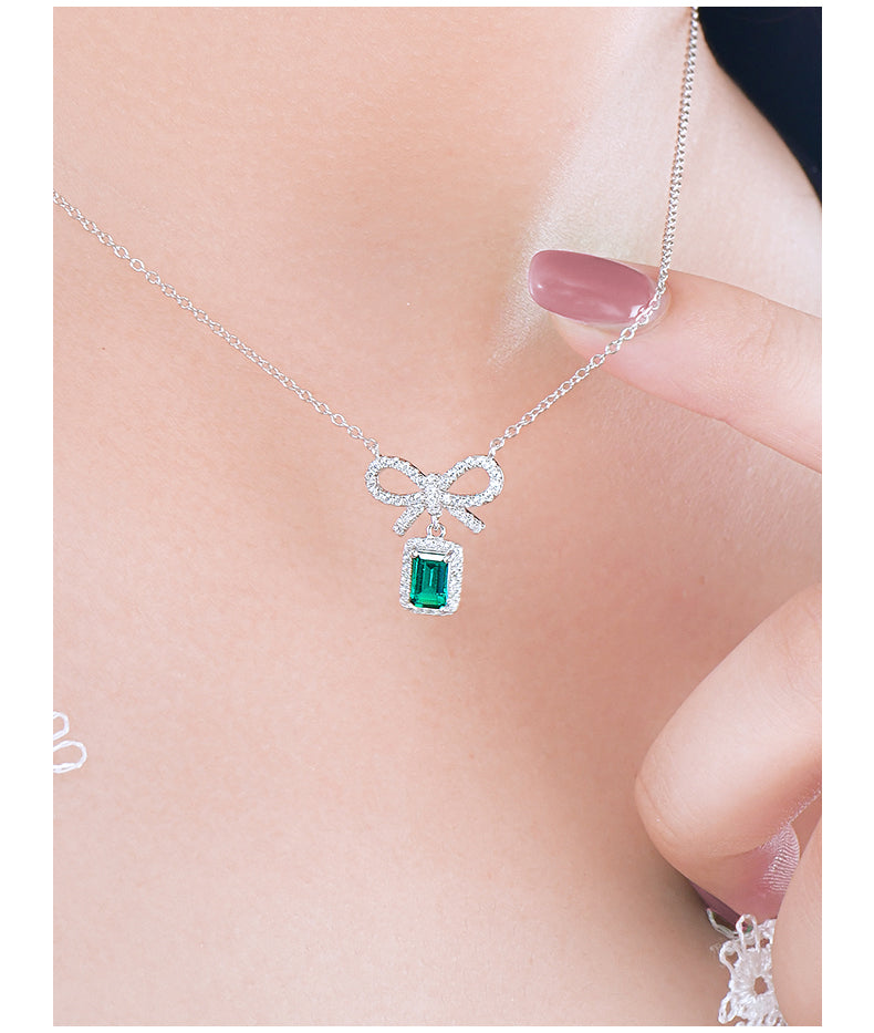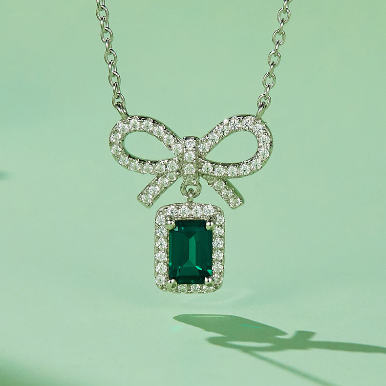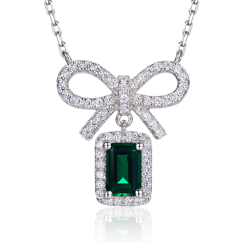 Butterfly tied square 0.5ct lab grown emerald S925 necklace