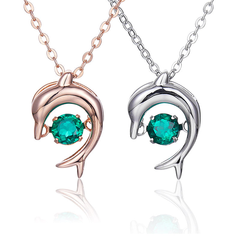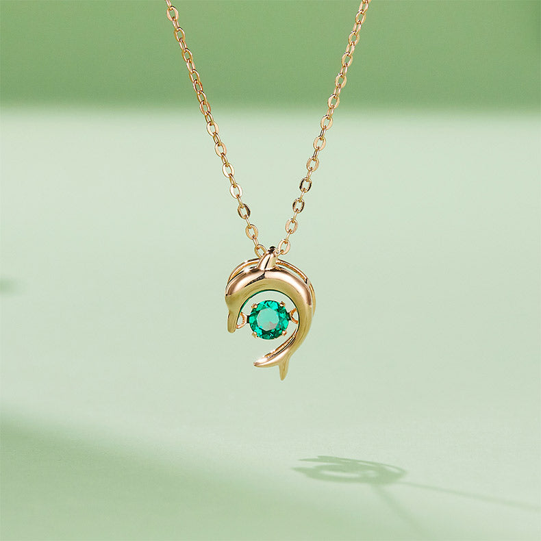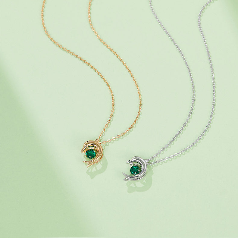 Dolphin 0.5ct lab grown emerald S925 necklace