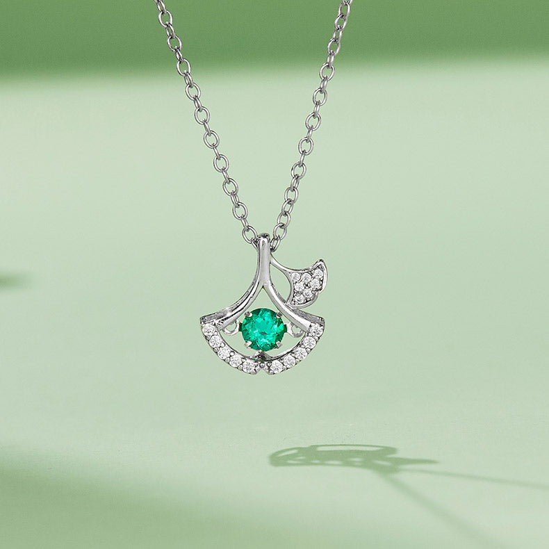 This luxurious Ginkgo leaf 0.25ct lab grown emerald S925 necklace is crafted with fine sterling silver and features stunning lab-grown emeralds for a sophisticated look. The consistent quality of 100% lab-grown emeralds makes for a reliable piece of jewelry that is sure to last for years to come.