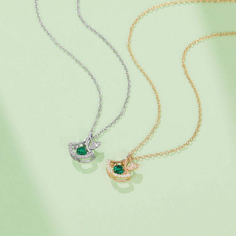 Ginkgo leaf 0.25ct lab grown emerald S925 necklace