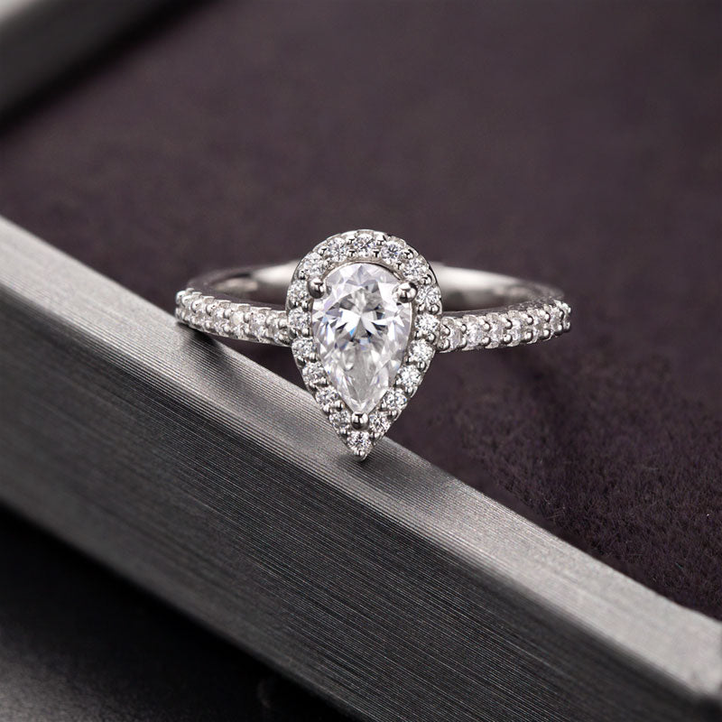 Halo Luxury pear 1.0ct moissanite S925 ring