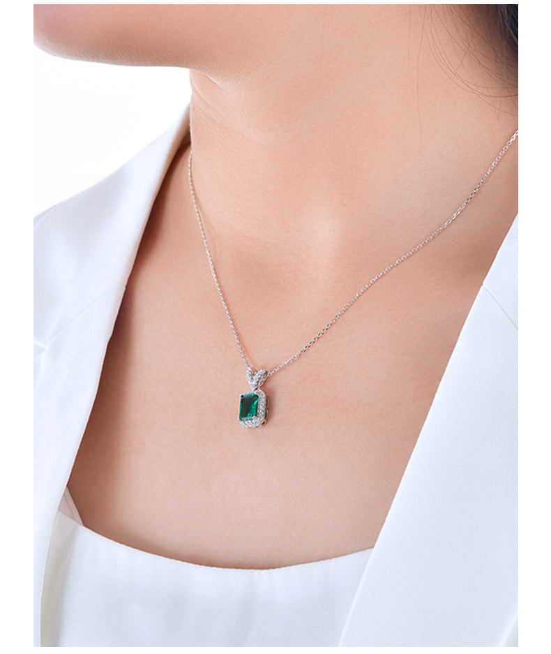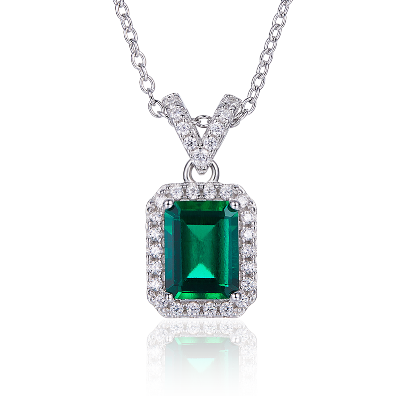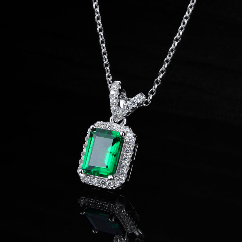 This luxurious square 1.25ct lab grown emerald S925 necklace is crafted with fine sterling silver and features stunning lab-grown emeralds for a sophisticated look. The consistent quality of 100% lab-grown emeralds makes for a reliable piece of jewelry that is sure to last for years to come.