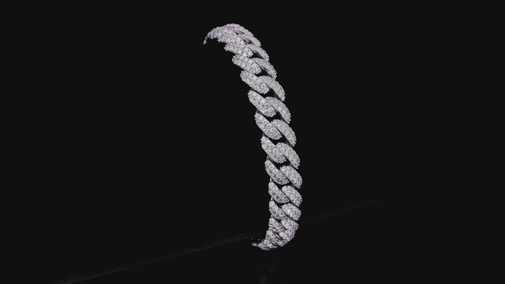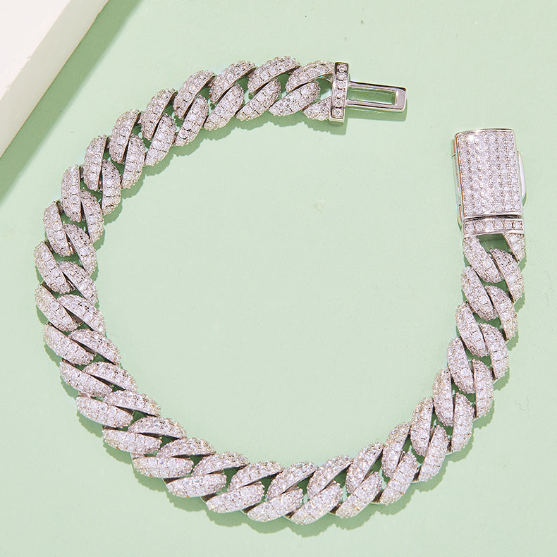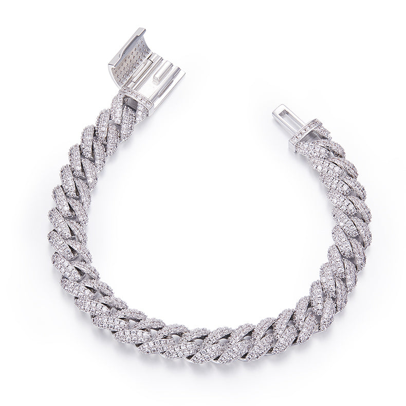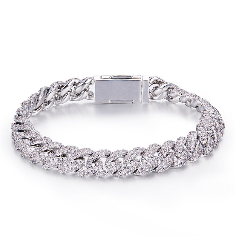 10mm wide Cuban chain white gold plating S925 Silver Moissanite diamond stone round white DVVS