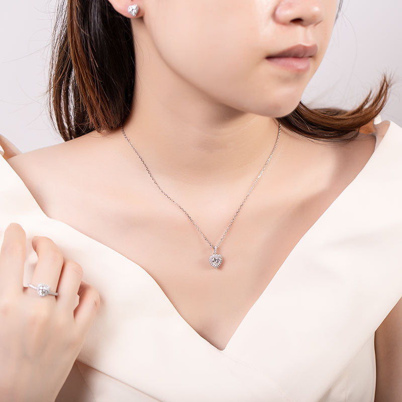 This luxurious heart 1.0ct moissanite S925 necklace is crafted with fine sterling silver and features stunning lab-grown emeralds for a sophisticated look. The consistent quality of 100% moissanite makes for a reliable piece of jewelry that is sure to last for years to come.