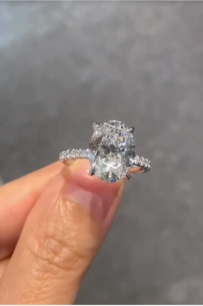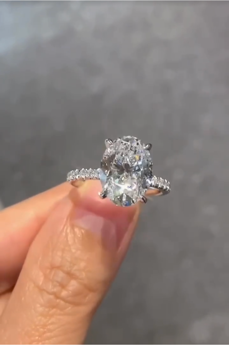 Classic elegance, this diamond engagement ring setting features pavé-set round brilliant diamonds