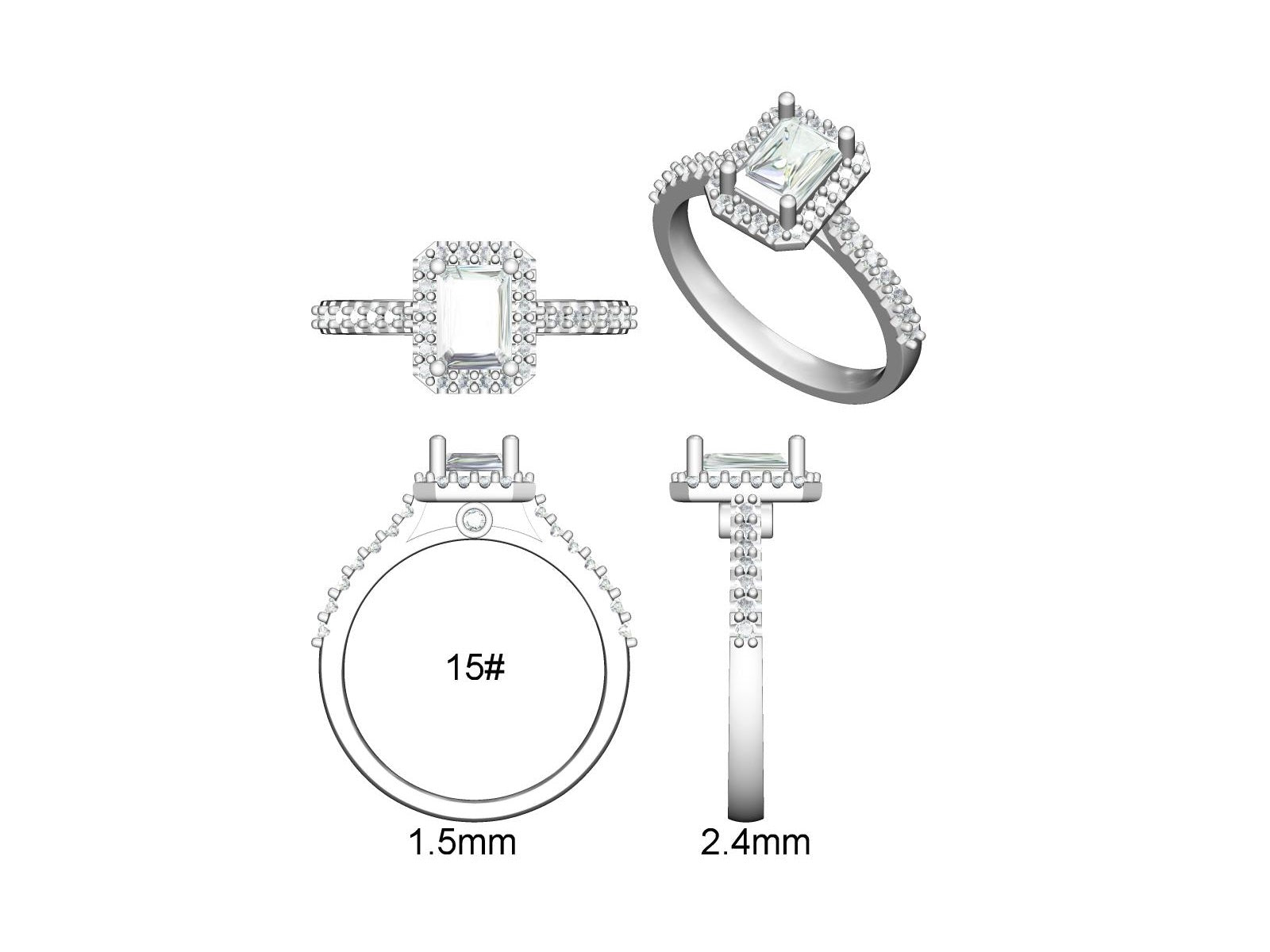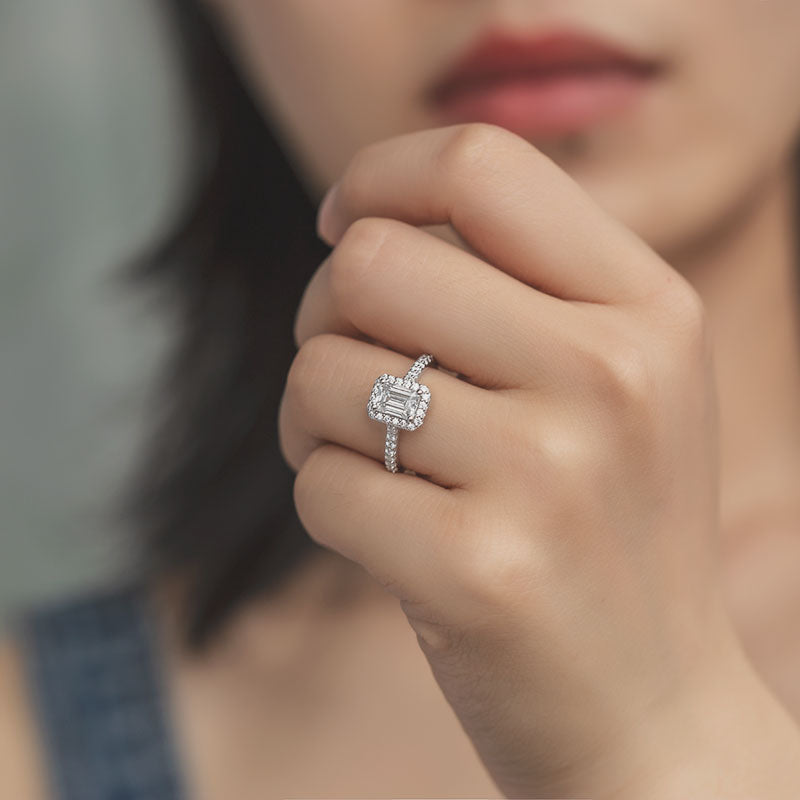 HALO Luxury emerald cut ring set